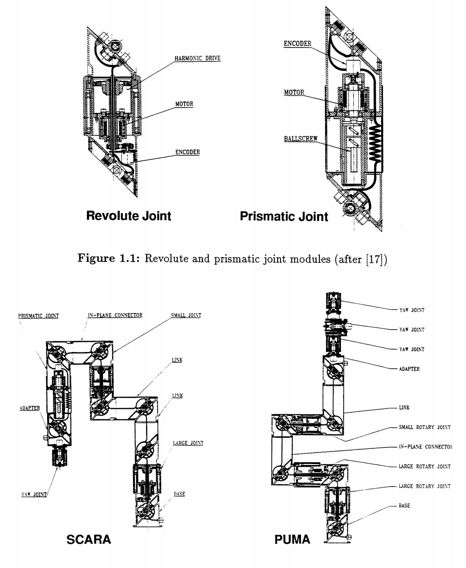 The following types of joint modules are assumed to be incorporated in our model modular robotic system:(The notations for joint module types are shown in the parentheses.)